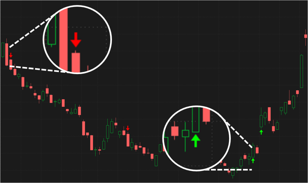 Sell signal: arrow-down in red.